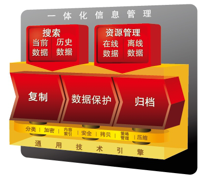 针对中小型数据中心量身打造的一体化数据管理方案。集成数据备份与恢复、数据迁移、数据共享、数据高可用性、连续数据复制、数据归档和存储资源管理等功能于一体。部署方便、快捷,减少用户建设投资,简化数据管理。 |