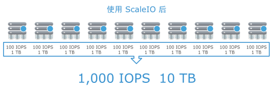 ScaleIO 不受基础架构限制,可与混合服务器品牌、操作系统(物理和虚拟)以及存储介质类型(HDD、SSD 和PCIe 闪存卡)同时使用。