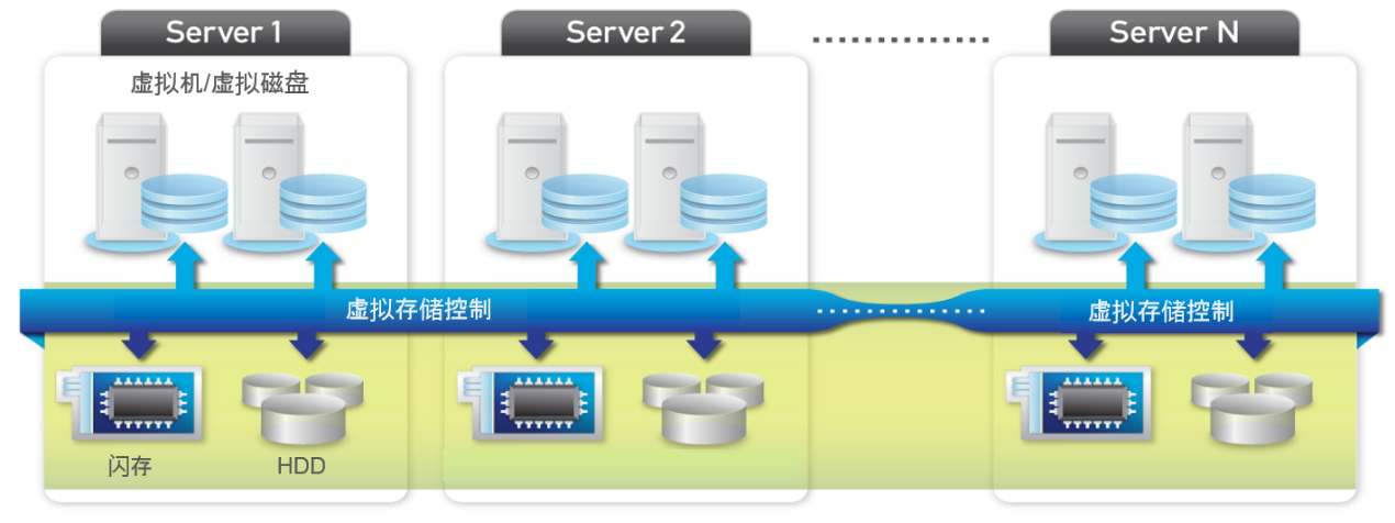 Storc超融合基础架构将存储和计算资源聚合至单层体系结构中,以聚合容量和性能并简化管理。群集内的任何应用程序皆可访问所有I/O和吞吐量。存储只是与其他应用程序同时运行的一个应用程序,且每个服务器都是全局存储和计算群集的构造块。聚合存储和计算简化了体系结构且降低了成本,同时具有外部存储的所有优势。Storc超融合基础架构使IT管理员可独自管理整个数据中心堆栈,并可提升运营有效性和降低运营成本