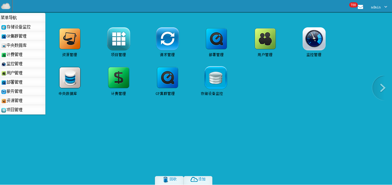 STORC平台系统是公司自主研发的基于云计算管理和统一存储管理的综合性产品。STORC云计算管理平台实现了对硬件资源和软件资源的统一管理、统一分配、统一部署、统一监控和统一备份,同时对用户提供了统一服务界面,多种服务目录和灵活的自动化服务流程。