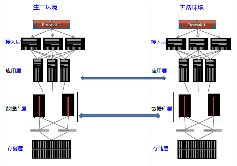 为了实现应用级容灾,灾备中心需要提供服务器、存储、SAN网络、IP网络等硬件设施以及操作系统、数据库、中间件和应用程序等软件。总体来看: