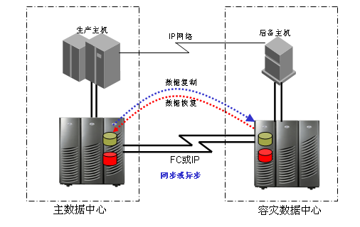 采用基于主机系统的容灾方式的核心是利用主、备中心主机系统通过IP网络建立数据传输通道,通过主机数据管理软件实现数据的远程复制,当主数据中心的数据遭到破坏时,可以随时从备份中心恢复应用或从备份中心恢复数据,从而给企业提供了应用系统容灾的能力。