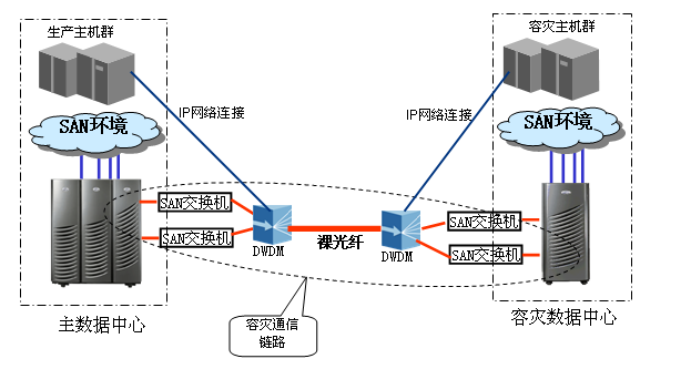 在建设两个容灾中心数据同步的方案中,同步的方式对两个容灾中心之间的链路有比较高的要求,要求两个容灾中心的距离不超过30KM,之间的链路为裸光纤链路。具体要要求分析如下。