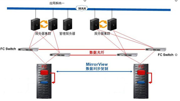 MirrorView的实施和主机、操作系统、数据库透明,即不占用主机、操作系统、数据库。而且不同的主机、操作系统、数据库可以通过一套MirrorView实现容灾。MirrorView同时支持双向的容灾互备。MirrorView用来复制基于SAN存储网络的数据。